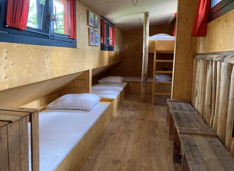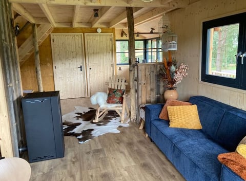 S'agit-il encore d'une cabane dans les arbres ou d'un palais dans les arbres. Quel que soit le nom que tu lui donnes, l'expérience joue ici un rôle central. Des loisirs en hauteur, une vue imprenable, un balcon/terrasse fantastique, dominé par un énorme hêtre qui le traverse, et un espace intérieur surprenant sont les caractéristiques de cette demeure passionnante. Mais avec le confort d'une cuisine et d'une salle de bain avec douche et toilettes. Le Beech dispose d'un salon/salle à manger avec cuisine ouverte, d'une chambre spacieuse avec un lit double à baldaquin, et d'un grenier où se trouvent quatre lits simples (cages). Il y a également une salle de bain avec un lavabo, une cabine de douche et des toilettes. La Tree House est solidement meublée avec des matériaux naturels bruts et des accessoires surprenants. Ici, les rêves deviennent réalité, car qui ne voudrait pas un jour dormir dans une cabane dans les arbres ?